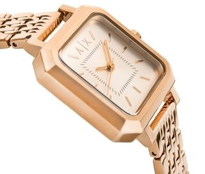 Odkryj jak segmentowana bransoleta zegarka w kolorze różowego złota może dodać czaru Twoim codziennym stylizacjom! Jej subtelna konstrukcja emanuje elegancją, wprowadzając finezję, która przyciąga spojrzenia. Wykonanie z wysokiej jakości stali nierdzewnej sprawia, że nie tylko zachwyca wyglądem, ale także zapewnia trwałość i komfort noszenia. Zmysłowy charakter tej bransolety sprawia, że doskonale układa się na kobiecym nadgarstku, delikatnie go oplatając i podkreślając jego kobiecość. Całość dopełnia subtelne logo AX Armani Exchange na zapięciu bransolety, które stanowi ekskluzywny akcent.